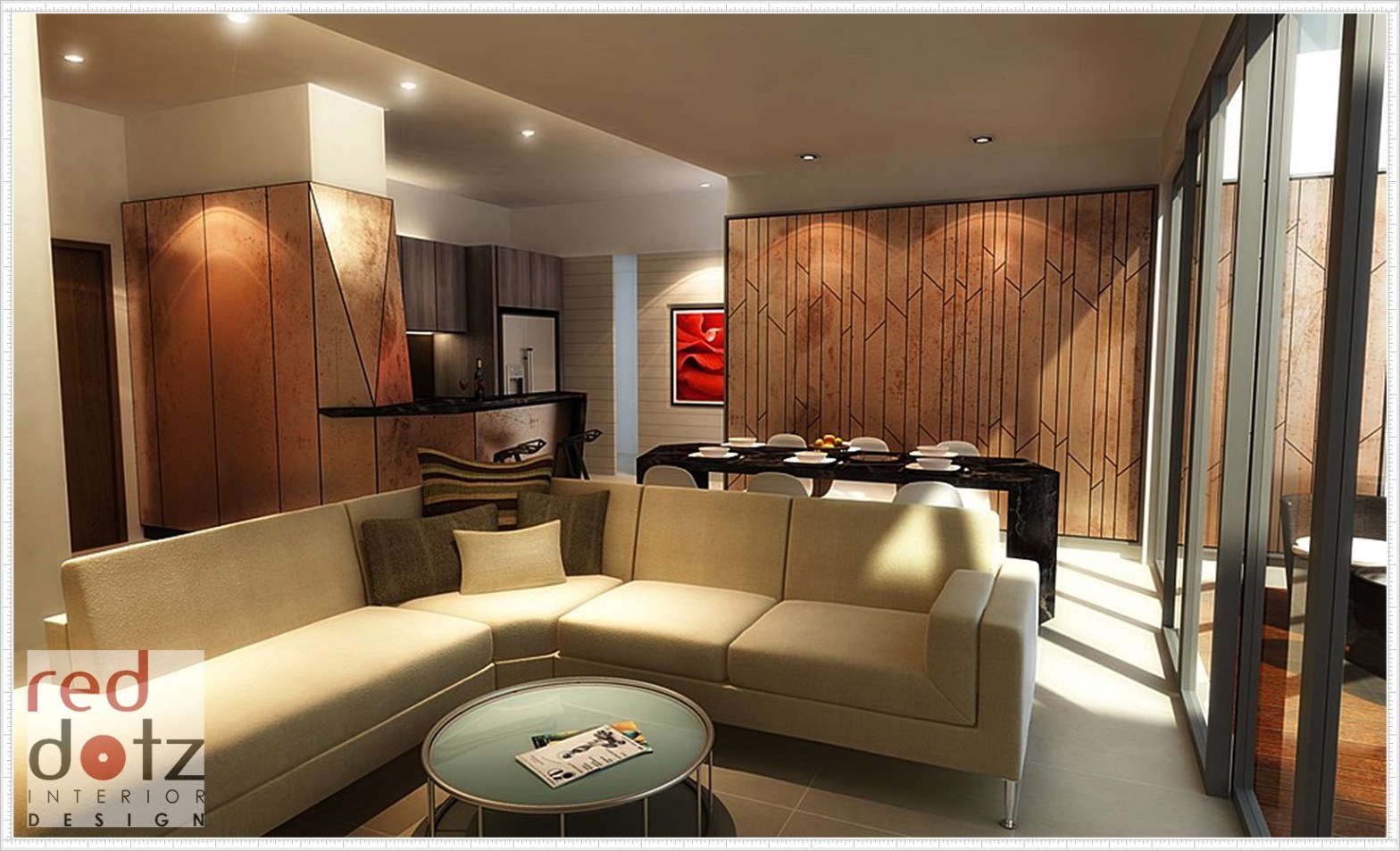 An open yet harmony living space with free flowing layout planning. Family members can carry out their own activities on desire areas without interfering each others while still maintaining certain degrees of interaction among them. Low cabinet and kitchen island is placed smartly as a spatial divider between each functional areas.